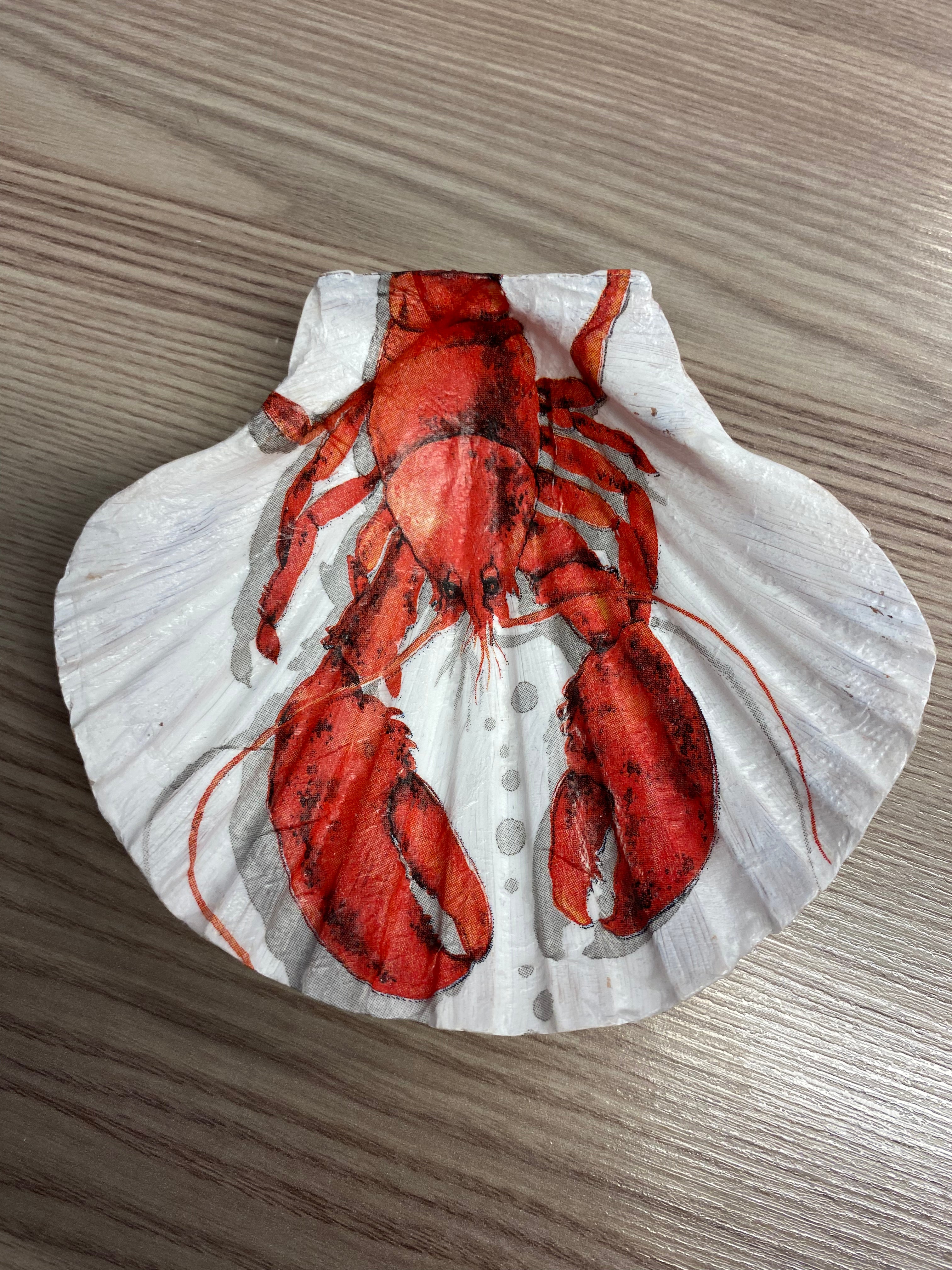 Scallop Shell Decoupage Ring Dish, Lobster